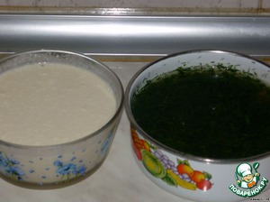 Меленько режем зелень и добавляем в полузастывшее желе.