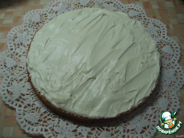 • Раскладываю коржи, сбрызгиваю коньяком и начинаю промазывать кремом.