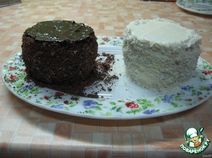 У глазированных бока засыпаю шоколадной стружкой, а кремовые белые - кокосовой белой стружкой. -