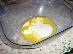маргарин, или масло.. у меня было масло..растираем с сахаром