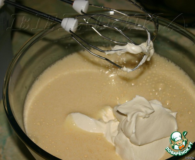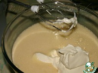 Вливаем растопленное масло (прямо горячее), продолжая взбивать. |