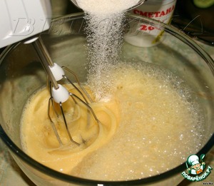 Яйца взбиваем с сахаром и щепоткой соли. |
