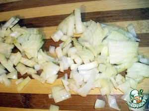 • Обжарить лук на растительном масле. Добавить по вкусу соль, перец, мускатный орех. Хорошо перемешать.