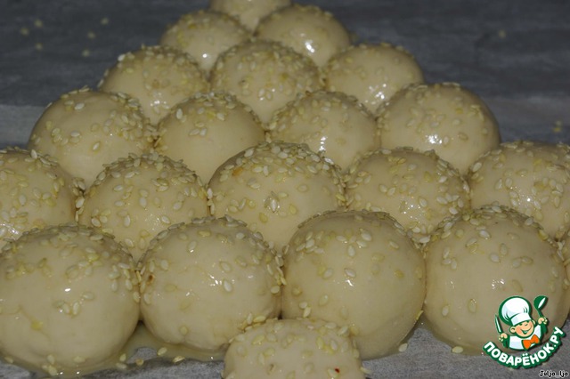 Посыпаем кунжутом и оставляем минут на 40 в тёплом месте. |