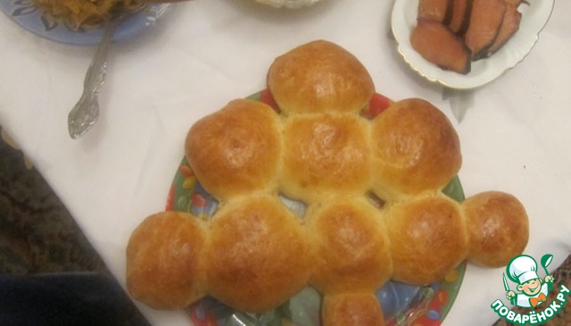Увидела этот рецепт в "Школе гастронома", и не смогла не приготовить на Новый год. Тем более, что для того, чтобы год был хорошим, нужно самим испечь для новогоднего стола хлеб. Делается всe очень просто, получается вкусно и очень по-новогоднему.