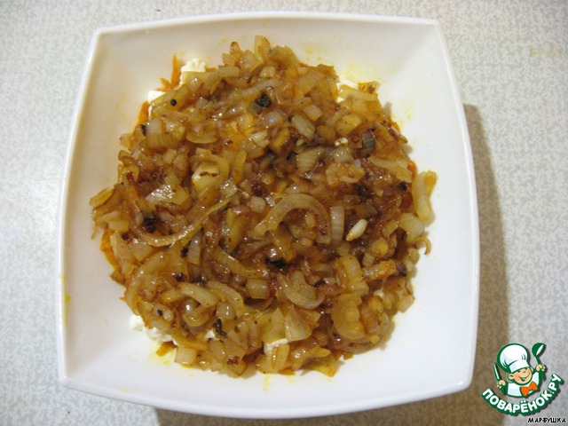 Лук шинкуем, обжариваем.