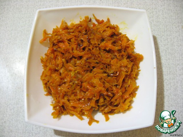 морковь трем на терке, обжариваем.