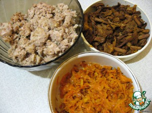 Подготавливаем продукты: фарш обжариваем,
