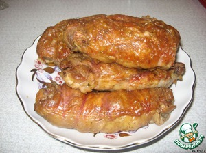 Сворачиваем кожу с начинкой, обматываем нитками, чтоб не распался.