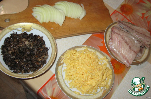 Вкусная рыбка с грибами и сыром. Это блюдо было у нас на новогоднем столе.