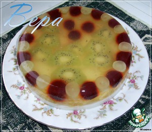 Залить небольшим слоем ананасового желе, чтоб не поплыли.
