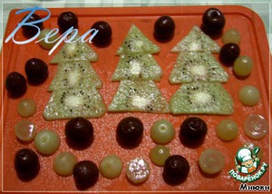 Очистить киви, нарезать ломтиками и вырезать из них елочку.