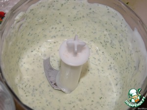 • Соус. Майонез + зелень + раздавленный чеснок + 2 столовые ложки лимонного сока. Взбить хорошенько.