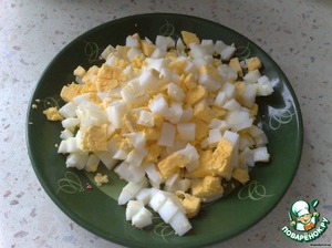 Вареные яйца режем кубиками.