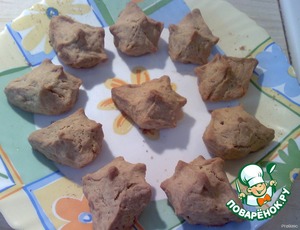 Остуженное тесто вынимаем, разрезаем на нужное количество частей и формируем шарики (размером как хочется, у меня были как грецкие орешки, может чуть меньше). Скатывать каждый шарик приходиться довольно долго, т. к. тесто, как песочное, несколько расслаивается.