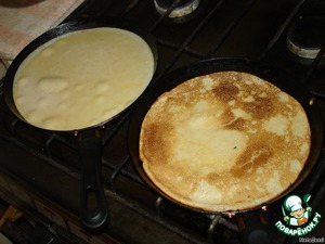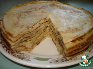 Можно сложить из готовых остывших блинчиков, тогда тортик ставим в микроволновку на несколько минут. -