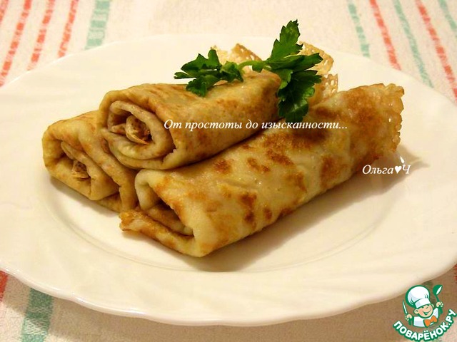 Быстрое, сытное и вкусное блюдо! Все элементарно просто!!! Идея для тех, кто не хочет долго возиться с начинкой, а простые блины уже надоели.
