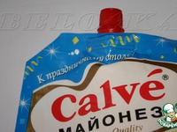 У пакетика с майонезом отрезаем уголок, чтобы образовалась маленькая дырочка.