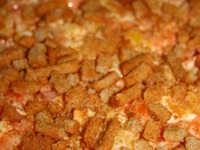 Посыпаем ржаными сухариками. У меня были "3 корочки", но лучше, конечно, взять самодельные.