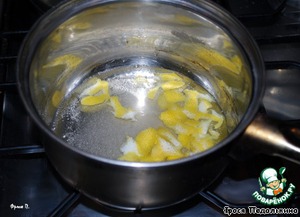В сотейник налить 100 мл воды, добавить сахар, половину цедры и довести до кипения. Снять с огня. -