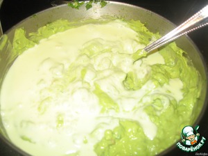 • Распущенный желатин разбавляем сливками и все аккуратно смешиваем.