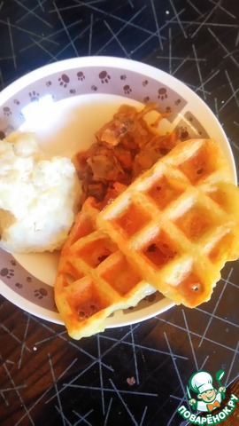 [+5]На мой вкус на драники не совсем похоже: нежирно, более толстенькие «коржики», сверху чуть подсушенные. Мне кажется, можно держать в вафельнице и дольше, чтобы картошка внутри стала прямо пюреобразной. Буду пробовать готовить с с добавлением разных начинок в тесто (зелень, ветчина, мелко рубленные сосиски, сыр и т.д)