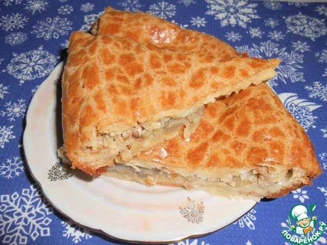 На сайте нашла похожий пирожок, но он без фотографий, и мой все-таки немного отличается приготовлением. Надеюсь, не сочтете меня плагиатором ( ( (. А пирог, на самом деле, очень вкусный и нежный. Угощайтесь!!!