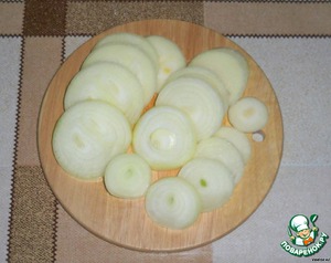 Лук нарезать кольцами, также 3-4 мм