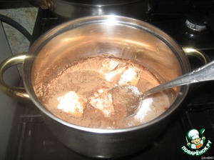 Для глазури - маргарин, сахар, молоко и какао уварить до густой массы (минут 10-15)