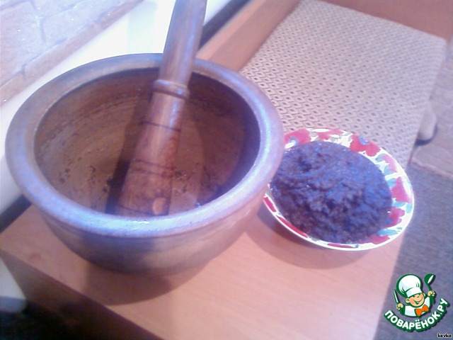 Вот так выглядит перетертый мак. Если у вас нет макитры и макогона, можна использовать кофемолку или другие чудеса техники.