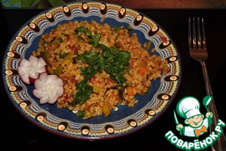 На этот слой кладут следующий и так к верху миски. Можно понемногу прибавлять кусочки масла, если каша все же получилась слишком сухая. Верхний слой поливают тем же жиром и посыпают свежими шкварочками...