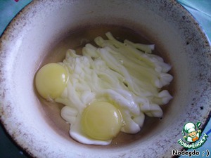 Готовим кляр. Яйца смешиваем с майонезом до однородной консистенции (никакой муки!).