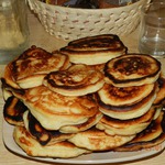 Жарить на среднем делении сковороды, выкладывая ложкой смесь. Выпекать с одной стороны до появления пузырьков-дырочек, перевернуть. -