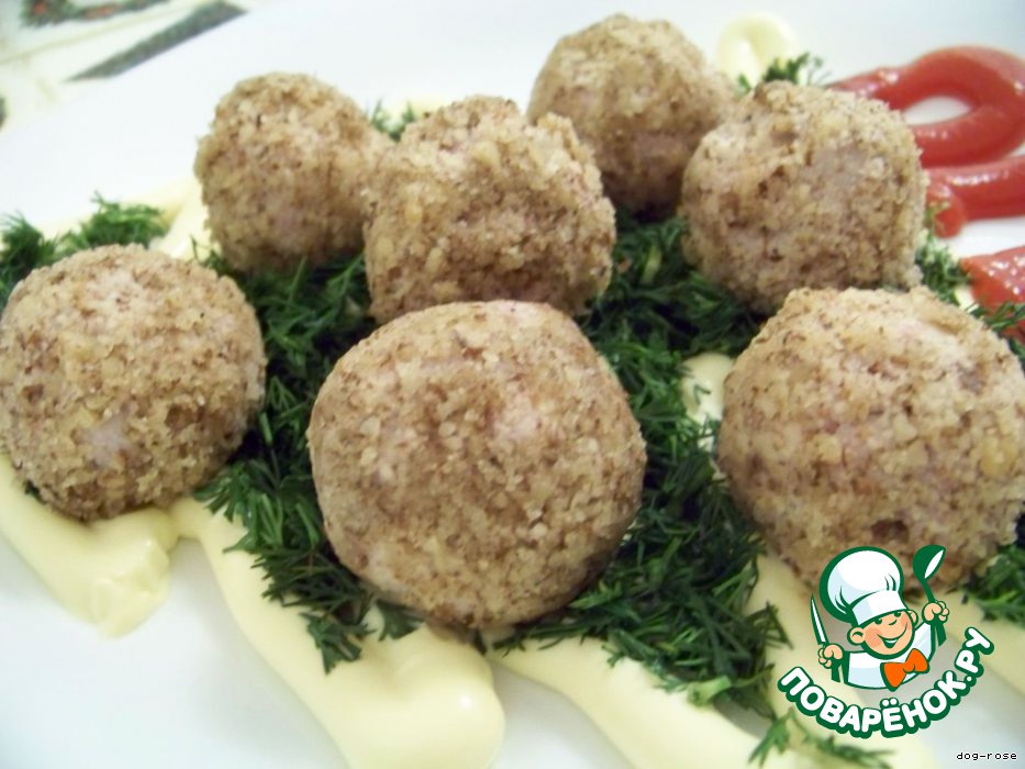 В Новогоднюю ночь даже елочные игрушки могут быть съедобными. Нежные, вкусные ветчинно-сырные шарики в ореховой панировке вот в таком, праздничном, оформлении. На конкурс «Gorenje: новогодняя композиция».