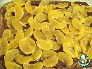 Мандарины чистим, дольки разрезаем пополам и выкладываем поверх глазури, пока она еще горячая и жидкая, иначе будут сваливаться.