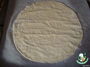 После приготовить 7 листов пергамента размером с противень (советую это сделать заранее). Посыпать лист мукой. Затем на каждом из листов раскатать тесто любой формы по желанию.
