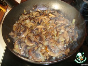 Затем добавить лук и обжарить все вместе до золотистого цвета лука.