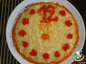 Украсить вы можете по своему желанию. Так как праздник, к которому я готовила салат, был Новый год, то и украсила я его соответственно этому празднику.