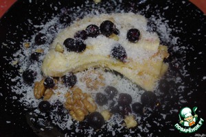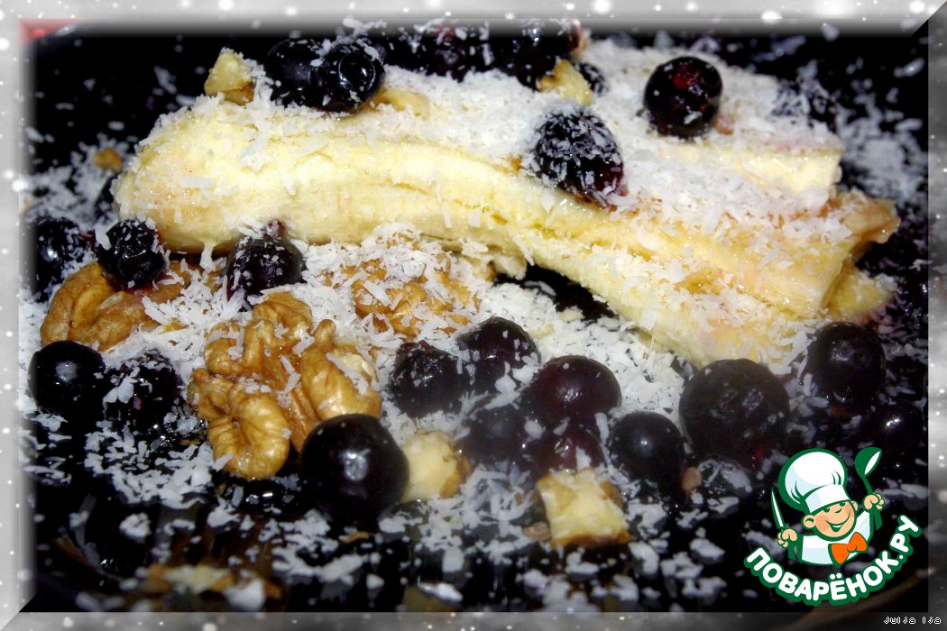 • Поливаем соусом и посыпаем кокосовой стружкой.