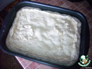 Сверху пирог закрываем целым пластом теста, чтоб обеспечить хорошее приготовление начинки.