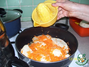 • Выдавливаем сок апельсина и заливаем овощи.