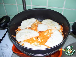 Выкладываем слоями на лук сверху: сельдерей, морковь, сельдерей, морковь