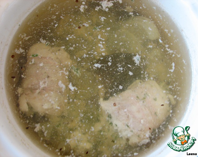 В кипящую воду добавить лук, лавровый лист, соль и положить рулетики. Варить 10-15 минут.