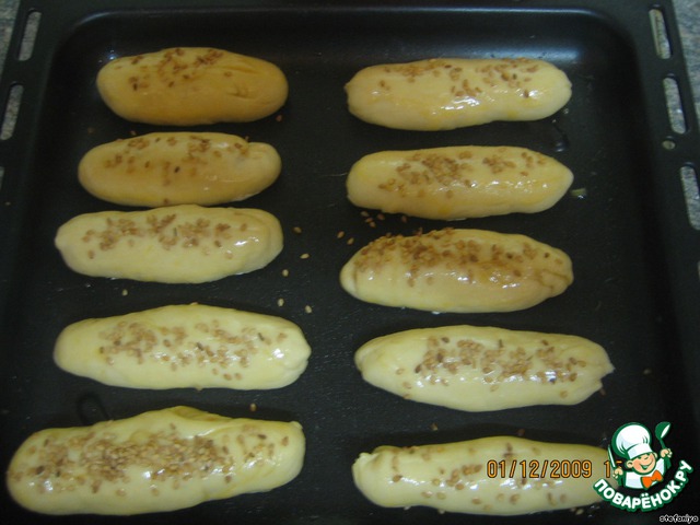 Смазываем яйцом, можно присыпать кунжутом, маком. -
