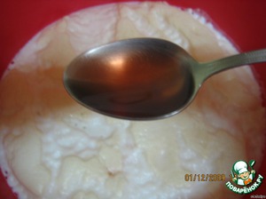 Оставляем в теплом месте до появления пены (я под кастрюльку с закваской ставлю стакан с горячей водой) -