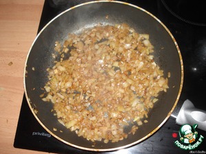 Режем лук и поджариваем до золотистого цвета.