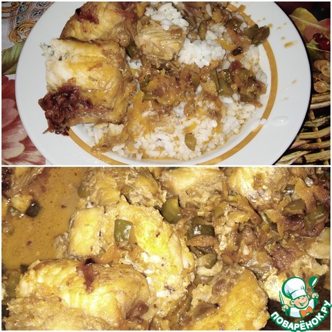 Рецепт «Хек под кисло-сладким соусом с солeными огурцами»: