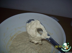 Когда тесто один раз поднимется, перемешать его и дать подойти ещe раз.