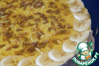 Тесто выкладываем в в разъемную форму, гладко разравниваем и выпекаем 25-30 минут на среднем огне.