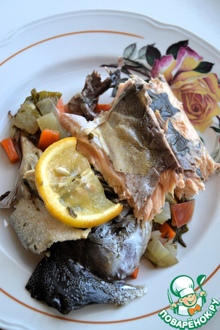 [+5]Готовила из горбуши весом около 1,2 кг. Также взяла 2 головки репчатого лука, пучок зелёного, большую морковь и половину большого лимона. Вместо корня петрушки добавила сушёную петрушку. Больше ничего не добавляла.